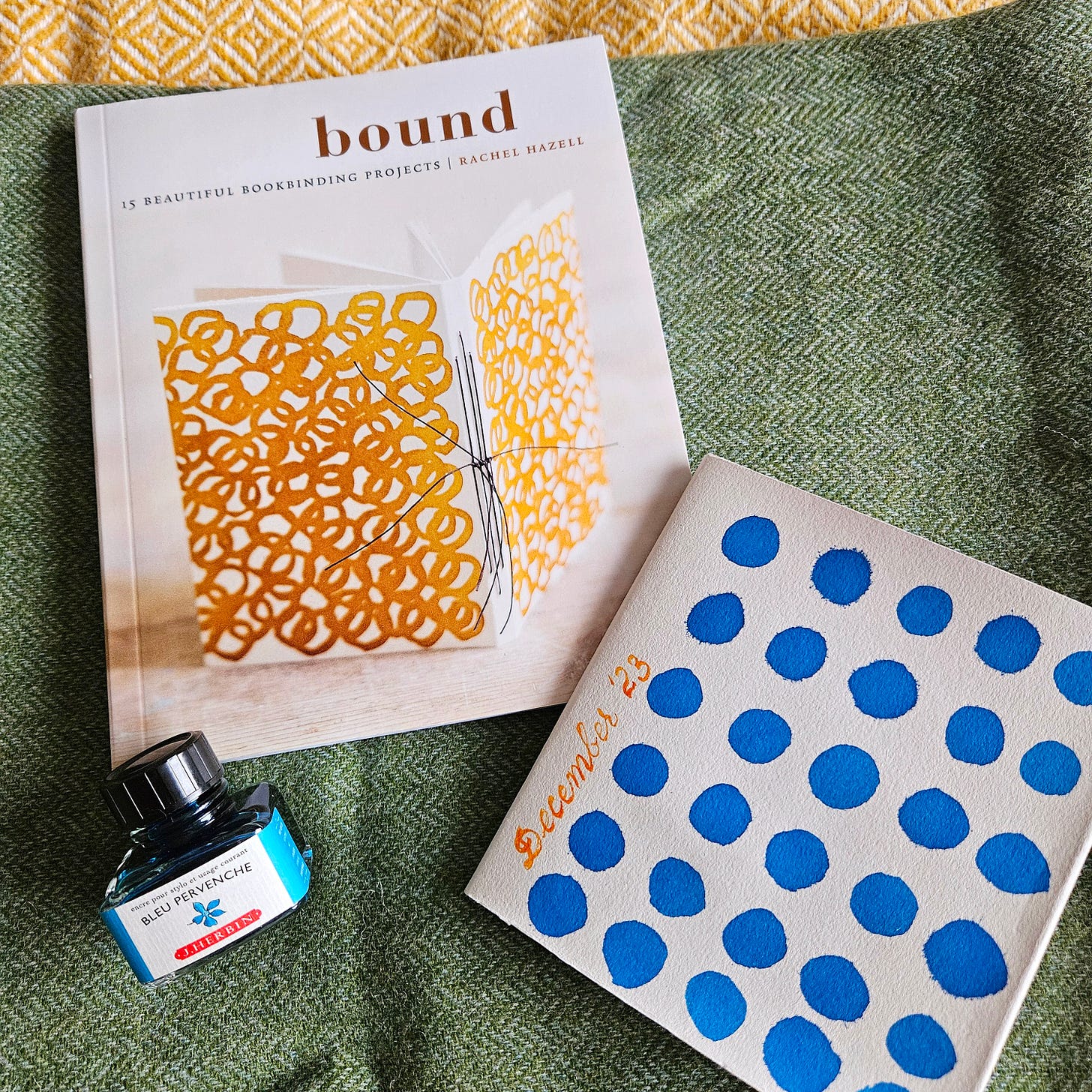 Just before Christmas, I came across a passionate bookbinder on YouTube by the name of Rachel Hazell or The Travelling Bookbinder. I was so intrigued. I have always loved books, I’m a bookworm, after all, but this is a different way of loving books. So I bought her book Bound where she guides you through 15 beautiful bookbinding projects. The book itself is so beautiful, her passions for books, paper, and her beautiful home of Edinburgh and the small Hebridean island of Iona shine though her words and breath-taking photographs. I adore the book and I jumped right into the first project the next day. The project was simple and it only required one A3 size paper of your own choice of weight – I used wallpaper lining paper for my experiment, this paper can hold watercolours or inks. The paper is then folded here and there, cut to make a slit, and voila, you have an 8 page book – a sketchbook, in my case. I decorated each page with random repeat patterns using a brush and colourful inks, it was such a quick, playful, and satisfying project. My mind is buzzing with plans and possibilities, I love it!
